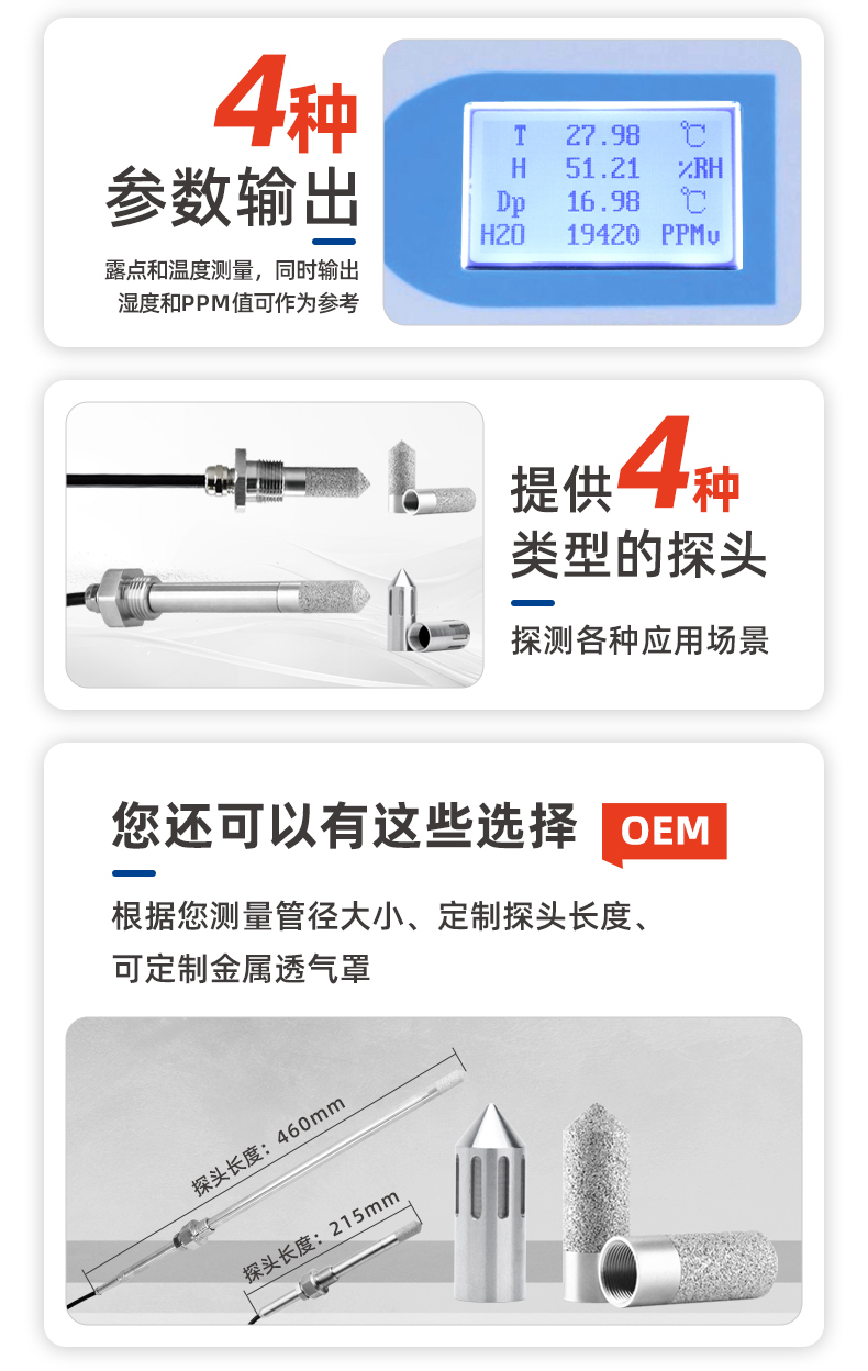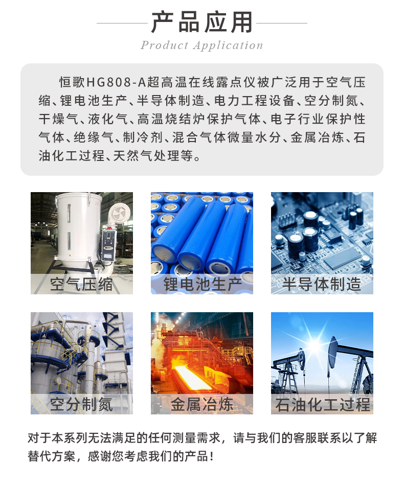 • 產品應用: 空氣壓縮、鋰電池生產、半導體制造、電力工程設備、空分制氮、干燥氣、液化氣、高溫燒結爐保護氣體、電子行業(yè)保護性氣體、絕緣氣、制冷劑、混合氣體微量水分、金屬冶煉、石油化工過程、天然氣處理等。