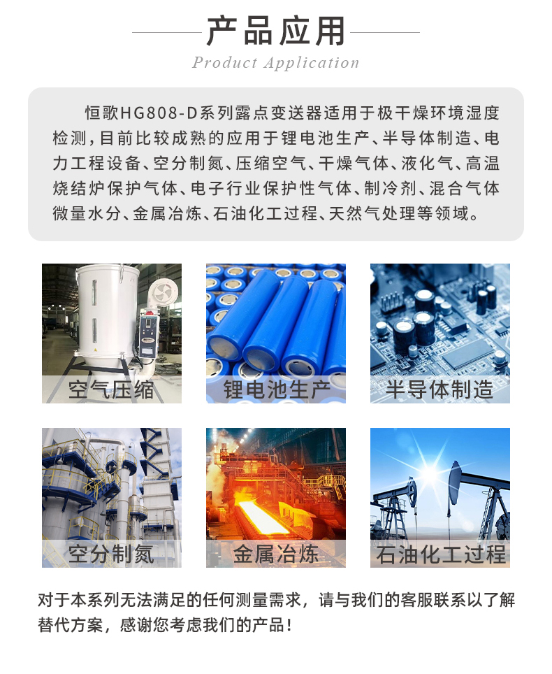 HG808-D系列在線露點測量儀結(jié)合了高品質(zhì)濕敏元件和先進校準技術(shù),非常適用于極干燥環(huán)境的露點測量,露點范圍涵蓋-60~90°℃,并且實現(xiàn)+2°℃ Td高精誤差。也正因變送器在干燥環(huán)境下對微水靈敏的感知能力,常被用于需要對環(huán)境濕度進行精確控制的場合,,例如鋰電池研究生產(chǎn)、半導體應(yīng)用、壓縮空氣干燥設(shè)備出氣口、手套箱微水檢測等場景。