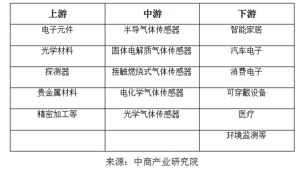 ? ? ? ?氣體傳感器行業(yè)的上游主要為電子元件、光學(xué)材料、探測(cè)器、貴金屬材料、精密加工等行業(yè)。電子元件等工業(yè)制成品行業(yè)處于高度競(jìng)爭(zhēng)狀態(tài),廠(chǎng)商眾多,競(jìng)爭(zhēng)激烈,產(chǎn)品普遍供大于求。